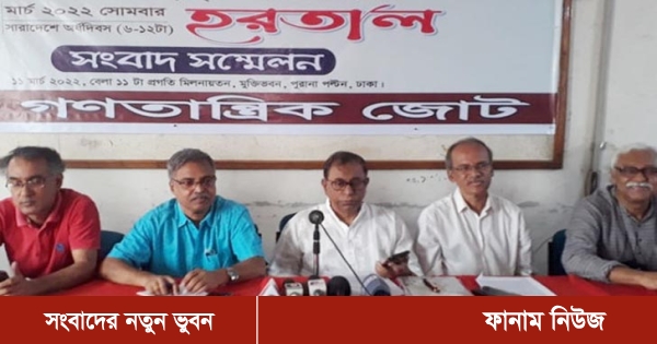 ভোজ্য তেল, পেঁয়াজসহ নিত্যপ্রয়োজনীয় পণ্যের দামের ঊর্ধ্বগতি ও গ্যাস, বিদ্যুৎ, পানির মূল্য বৃদ্ধির অপতৎপরতা বন্ধের দাবিতে আগামী ২৮ মার্চ সারাদেশে অর্ধদিবস হরতালের ডাক দিয়েছে বাম গণতান্ত্রিক জোট। এদিন সকাল ৬টা থেকে দুপুর ১২টা পর্যন্ত হরতাল কর্মসূচি পালিত হবে।