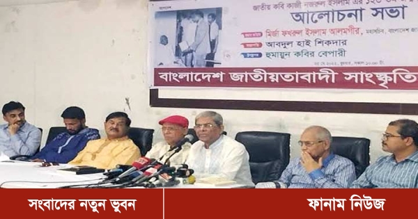 মির্জা ফখরুল বলেন, এই মুহূর্তে বাংলাদেশের বর্তমান সময়ে নজরুল এতবেশি প্রাসঙ্গিক যে প্রায়ই তার কথা মনে পড়ে। নজরুলকে আগামী দিনে মানুষের কাছে আরও পৌঁছে দেওয়ার জন্য এবং বর্তমান ফ্যাসিস্ট সরকারের ভয়াবহতা থেকে বেরিয়ে আসার জন্য, আসুন আমরা সবাই সেই গানের সঙ্গে গলা মিলাই ‘বলো বীর বলো উন্নত মম শির’।
