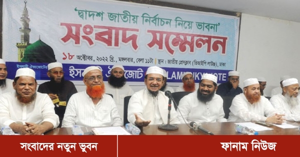 মঙ্গলবার জাতীয় প্রেস ক্লাবের জহুর হোসেন চৌধুরী মিলনায়তনে ইসলামী ঐক্যজোট আয়োজিত ‘দ্বাদশ জাতীয় নির্বাচন নিয়ে ভাবনা’ শীর্ষক সংবাদ সম্মেলনে এ কথা জানায় দলটি।