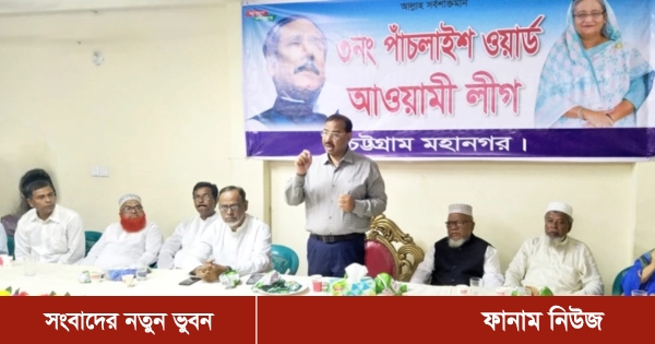 ৩ নম্বর ওয়ার্ড আওয়ামী লীগের সভাপতি জামাল উদ্দীনের সভাপতিত্বে সাধারণ সম্পাদক আব্দুর শুক্কুর ফারুকীর সঞ্চালনায় অনুষ্ঠিত সভায় বিশেষ অতিথির বক্তব্য রাখেন চট্টগ্রাম মহানগর আওয়ামী লীগের প্রচার ও প্রকাশনা সম্পাদক আলহাজ শফিকুল ইসলাম ফারুক, নির্বাহী সদস্য মহব্বত আলী খান।