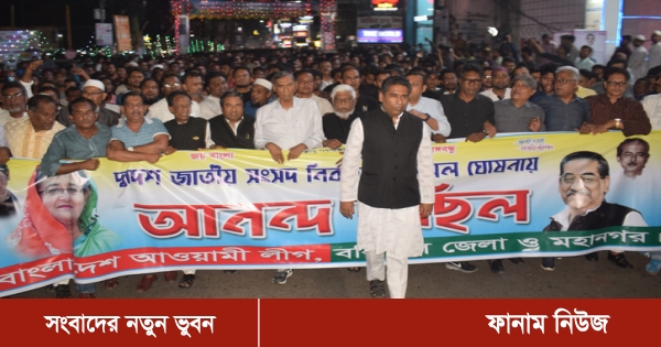 দ্বাদশ জাতীয় সংসদ নির্বাচনের তফসিলকে স্বাগত জানিয়ে আনন্দ মিছিল করেছেন ক্ষমতাসীন আওয়ামী লীগ ও সহযোগী সংগঠনের নেতাকর্মীরা।