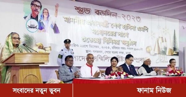 বিশ্বের সব খৃস্টান ধর্মের মানুষকে বড় দিনের শুভেচ্ছা জানিয়ে তিনি বলেন, বাংলাদেশের মাটি সবার জন্য। ধর্ম, বর্ণ নির্বিশেষে সবাই এক হয়ে যুদ্ধ করেছে। সবার রক্ত মিশে গেছে এই মাটিতে। এ সময় প্যালেস্টাইনে ইসরাইলের চালানো হামলার সমালোচনা করেন প্রধানমন্ত্রী।
