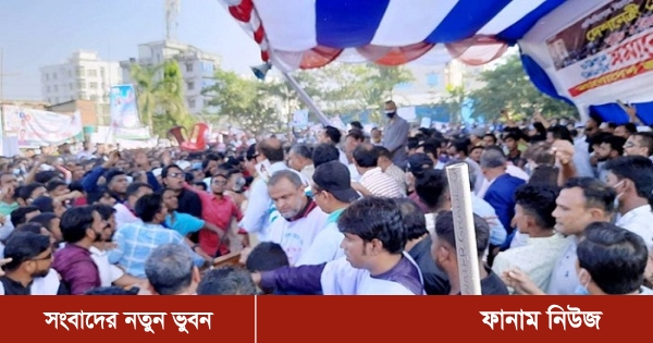 সেই বিক্ষোভ শেষে সমাবেশে যোগ দেন নেতাকর্মীরা।পরে নেতাদের বক্তব্য দেওয়ার সময় হঠাৎ মঞ্চটি ভেঙে পড়ে।এতে কেউ হতাহত হওয়ার ঘটনা ঘটেনি।