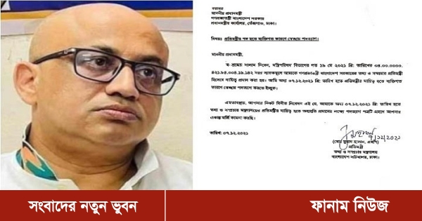 তার পদত্যাগপত্রটি সারসংক্ষেপ আকারে গণভবনে প্রধানমন্ত্রী শেখ হাসিনার কাছে পাঠিয়েছে মন্ত্রিপরিষদ বিভাগ। মঙ্গলবার সন্ধ্যায় গণমাধ্যমকে এ তথ্য জানিয়েছেন মন্ত্রিপরিষদ বিভাগের একজন কর্মকর্তা।
