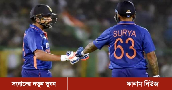 জবাব দিতে নেমে ১৫ রান করে আউট হয়ে যান লোকেশ রাহুল। তিনি আউট হন দলীয় ৫০ রানের মাথায়। এরপর রোহিত শর্মা আর সুর্যকুমার যাদব মিলে গড়েন ৯৪ রানের জুটি। ৩৬ বলে ৪৮ রান করে আউট হন রোহিত শর্মা। ৪০ বলে ৬২ রান করেন সুর্যকুমার যাদব। ৬টি বাউন্ডারির পর ৩টি ছক্কার মার মারেন তিনি।