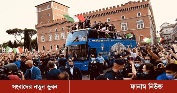 ইউরোর ফাইনালে ইংল্যান্ডকে হারিয়ে ইতালিকে যুদ্ধ করতে হয়েছে। গোল হজম করে পিছিয়ে থাকা ইতালি গোল শোধ করে টাইব্রেকিংয়ে ইংল্যান্ডকে হারিয়েছে। দেশে ফিরেই জনগণের সঙ্গে উচ্ছ্বাসে ভেসেছেন জর্জিও চিলিনি, জিয়ানলুইজি দোনারুমারা। ৫৩ বছর পর ইউরো চ্যাম্পিয়ন ইতালির দেশে ফেরা বিজয়ী নায়কদের বিরোচিত সংবর্ধনা দিয়েছেন ইতালির প্রেসিডেন্ট সার্জিও মাতারেল্লা।