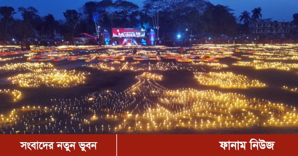 মুহূর্তেই অন্ধকার ছাপিয়ে বিশাল শেখ রাসেল মিনি স্টেডিয়ামে শহীদ মিনার, রফিক, শফিক, সালাম, বরকত, জব্বারসহ,বর্ণমালা ও বিভিন্ন ধরনের আলপনা ছাড়াও বাংলাদেশের নানান ঐতিহ্য তুলে ধরা হয় মোমবাতির আলোয়। সন্ধ্যার আগে মোমবাতি প্রজ্বলনে কয়েক হাজার স্বেচ্ছাসেবক অংশগ্রহণ করেন।