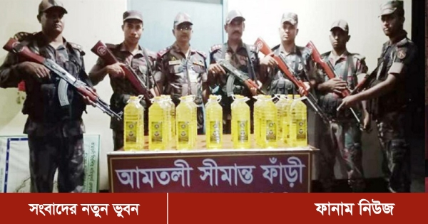 ভারতে পাচারকালে কুলাউড়া উপজেলার আমতলী সীমান্ত থেকে ২১ বোতল টিসিবির তেল জব্দ করেছে বর্ডার গার্ড বাংলাদেশ (বিজিবি) সদস্যরা।