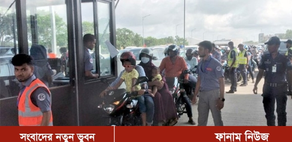 সরেজমিনে দেখা যায়, টোলপ্লাজার অভিমুখের ডেডিকেটেড লেনে হাজারো মোটরসাইকেল। সারিবদ্ধভাবে এসব মোটরসাইকেল টোল দিচ্ছে।