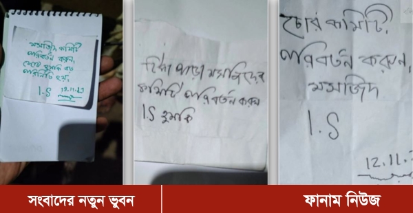 ১২ নভেম্বর দ্বিতীয় চিরকুট দেওয়া হয়। তাতে লেখা রয়েছে, ‘চোর কমিটি পরিবর্তন করুন।’ সেখানেও ‘আইএস’ ও ‘হুমকি’ লেখা রয়েছে।