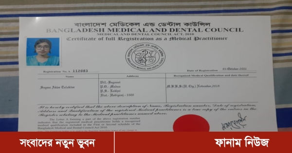 আমার সনদপত্রের রোল নং-৪৪৮ ও বিশ্ববিদ্যালয়ের রেজিঃ নং-৯৯৭ এবং বিএমডিসি এর রেজিস্ট্রেশন সনদপত্র নং-১১২০৮৩, তারিখ ০৩-১০-২০২১ খ্রি হওয়ার বিষয় সংশ্লিষ্ট সকলের জ্ঞাতার্থে উল্লেখ্য করা হলো। আমার স্বামী সিলেট সরকারি পুলিশ হাসপাতালের একজন নিয়োগপ্রাপ্ত এমবিবিএস ডাক্তার। তার গ্রামের বাড়ি আজমিরীগঞ্জ উপজেলা সদরে। আমরা উভয়ে সপ্তাহে একদিন শুক্রবার আজমিরীগঞ্জ উপজেলা সদরে গরীব ও দুঃস্থ রোগীদের ফ্রি/স্বল্প ফি তে চিকিৎসা দিয়ে আসছি। এছাড়া "আমার হবিগঞ্জ" পত্রিকার সংবাদে উল্লেখ করা হয়েছে আমার কোন গ্রহণযোগ্য সনদপত্র নেই এবং সনদে একাধিক বানান ভুল রয়েছে। আমার সনদপত্র বৈধ, সঠিক ও শুদ্ধ। উক্ত পত্রিকায় আমার সম্পর্কে প্রকাশিত সংবাদ সম্পূর্ণ মিথ্যা, বানোয়াট ও উদ্দেশ্য প্রণোদিত। আমাকে সমাজে হেয় প্রতিপন্ন করার উদ্দেশ্যেই এ ধরণের সংবাদ প্রকাশ করা হয়েছে। যাহা আইনি বিচারের দাবি রাখে। আমি উক্ত মিথ্যা ও ভিত্তিহীন সংবাদের তীব্র নিন্দা ও প্রতিবাদ জানাচ্ছি।’