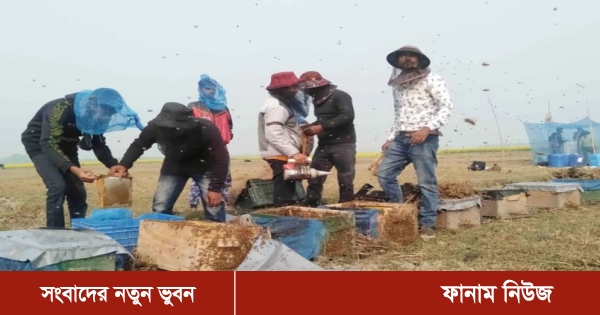নওগাঁর মান্দা উপজেলায় ফসলের মাঠ সরিষা ফুলে ফুলে ছেয়ে গেছে। এখন সরিষার ক্ষেতের পাশে মৌবাক্স স্থাপন করে কৃত্রিম পদ্ধতিতে মধু সংগ্রহে ব্যস্ত খামারিরা। ক্ষেতের পাশে ও ফাঁকা স্থানে মৌবাক্স স্থাপন করে চাষিরা একদিকে যেমন মধু সংগ্রহ করে লাভবান হচ্ছেন, অন্যদিকে ফুলের কৃত্রিম পরাগায়নে ফসলের উপকার হচ্ছে।