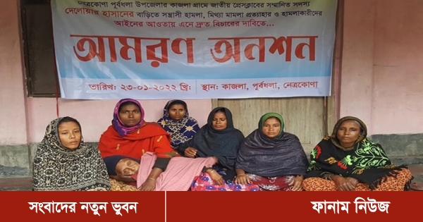 নেত্রকোনার পূর্বধলায় নির্বাচনি সহিংসতায় বাড়িঘরে হামলা ও সন্তানদের নামে দেওয়া মিথ্যা মামলা প্রত্যাহারের দাবিতে আমরণ অনশনে বসেছেন আনন্দের নেছা (৯০) নামে এক বৃদ্ধা। তিনি জাতীয় প্রেস ক্লাবের সদস্য সিনিয়র সাংবাদিক দেলোয়ার হাসানের মা।